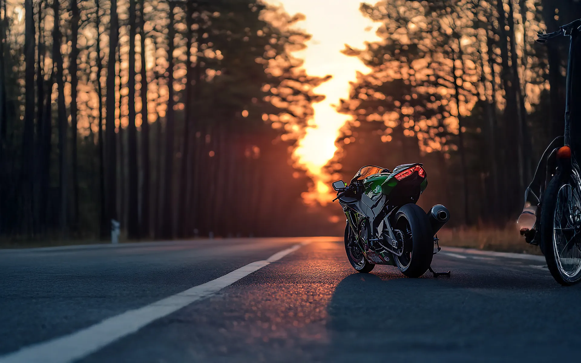 Moto Kawasaki H2R à compresseur vue de face sur une circuit.